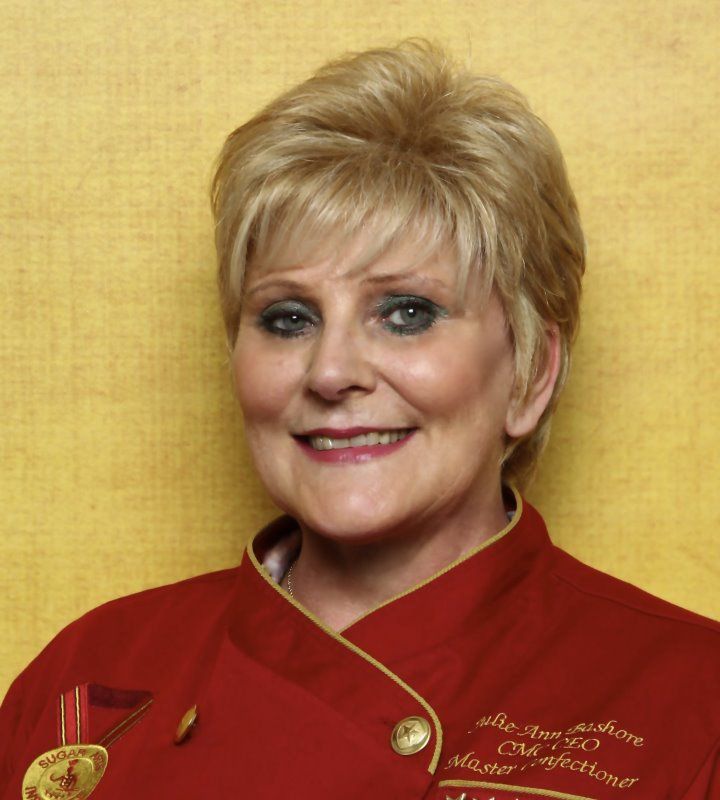 Julie Bashore, Master Confectioner, is a native of England who has an award winning, thirty-year background in Culinary and Confectionery Arts. Julie has taught courses and demonstrated at expositions in England, Ireland, France, Germany, Switzerland, Mexico, USA, Zimbabwe, Nigeria, Australia, New Zealand, Hong Kong, Costa Rica and Vietnam.