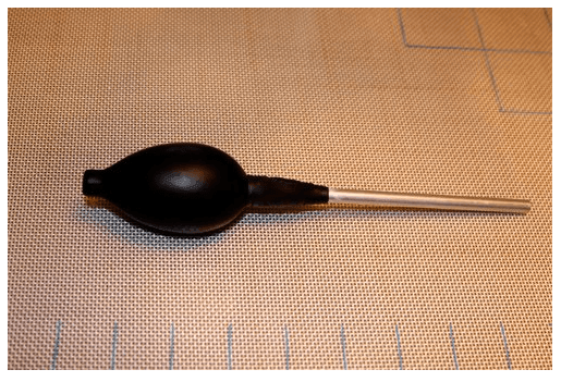 This special blown sugar pump is made so that it is easy to handle and easy to control while blowing sugar or Isomalt sugar. The aluminum pipe makes the sugar easy to attach and also to remove without burning or having a melting mess. This pump will give you the control needed for your delicate sugar creations.